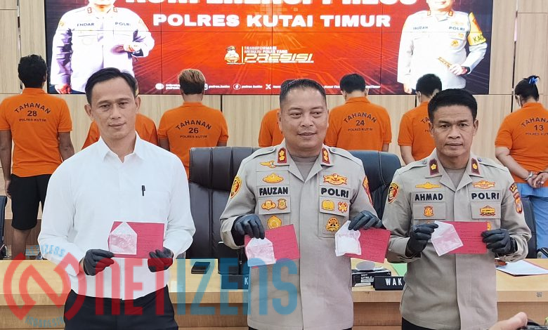 KUTAI TIMUR, Netizens.id – Upaya pemberantasan narkoba yang dilakukan Polres Kutai Timur kembali membuahkan hasil. Dalam operasi selama sebulan terakhir, sembilan tersangka berhasil ditangkap dengan barang bukti puluhan gram sabu senilai lebih dari Rp70 juta. Ironisnya, salah satu pelaku yang diamankan ternyata masih berusia 17 tahun.