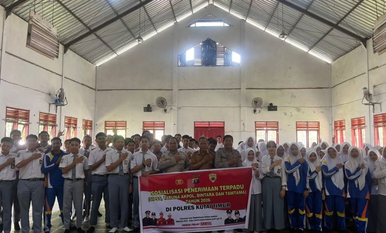 KUTAI TIMUR, Netizens.id — Sosialisasi Penerimaan Terpadu Polri Tahun Anggaran 2026 digelar Polres Kutai Timur di Aula SMAN 1 Sangatta Utara, Selasa (14/10/2025). Kegiatan diikuti puluhan pelajar SMAN 1 Sangatta Utara.