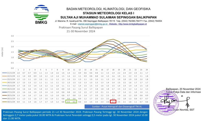 BALIKPAPAN, Netizens.id — Badan Meteorologi, Klimatologi dan Geofisika (BMKG) Stasiun Balikpapan mengajak warga yang bermukim di kawasan pesisir Kalimantan Timur (Kaltim) mewaspadai kemungkinan dampak pasang di perairan laut setinggi 2,7 hingga 2,9 meter dalam periode 21-30 Oktober 2025.