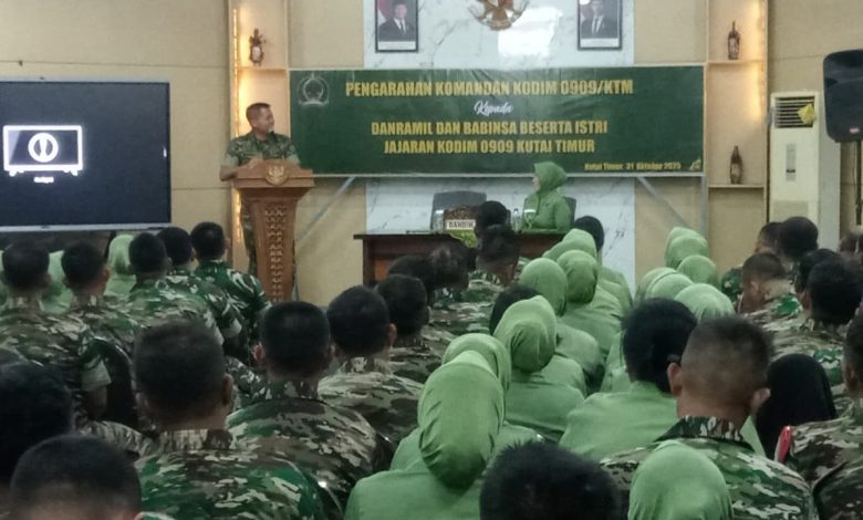 KUTAI TIMUR, Netizens.id – Arahan pada acara apel Danramil dan Babinsa jajaran Kodim 0909/Kutai Timur beserta istri di Aula Makodim 0909/Kutai Timur, Jalan Teritorial, Kompleks Perkantoran Bukit Pelangi, Sangatta, diberikan Komandan Kodim 0909/Kutai Timur Letkol Arh Ragil Setyo Yulianto, Jumat (31/10/2025).