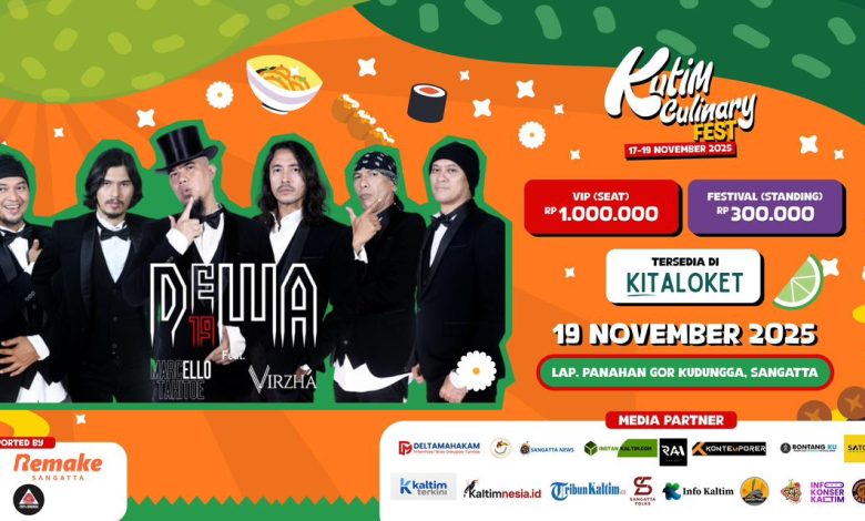 KUTAI TIMUR, Netizens.id – Suasana Kota Sangatta dipastikan akan bergemuruh pada pertengahan November mendatang. Grup musik legendaris Dewa 19 akan menggelar konser spektakuler di GOR Kudungga, Lapangan Panahan Sangatta, pada 17–19 November 2025 mendatang dalam rangkaian Kutim Culinary Fest 2025.