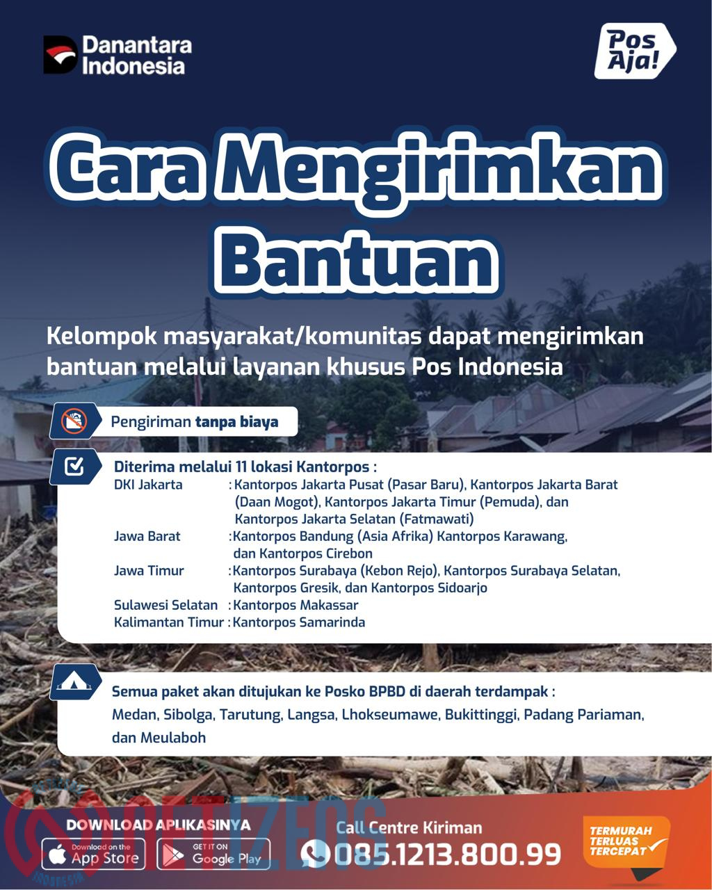 “Paket bantuan dapat dikirimkan dari Kantor Cabang Utama di Jakarta, Bandung, dan Surabaya, akan diteruskan ke Posko BPBD di Sumut, Aceh, dan Sumbar. Untuk info lebih lanjut dapat menghubungi nomor WhatsApp layanan Pos Indonesia di 0851-2138-0099,” jelas Prasabri dalam keterangan pers, Minggu (30/11/2025).