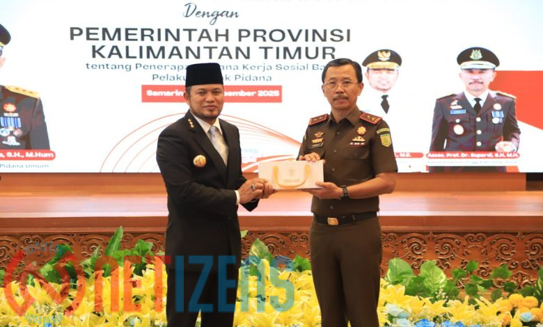 SAMARINDA, Netizens.id – Assoc Prof. Dr. Supardi, SH.MH, Kepala Kejaksaan Tinggi Kalimantan Timur bersama Dr. H. Rudy Mas’ud, Gubernur Provinsi Kalimantan Timur menandatangani Nota Kesepahaman (MoU) terkait penerapan pidana kerja sosial sebagai bagian dari pemberlakuan Kitab Undang-Undang Hukum Pidana (KUHP) 2023, serta sinergi pelaksanaan pidana kerja sosial antara Kejaksaan Negeri se-Kaltim dengan pemerintah kabupaten/kota. Kegiatan berlangsung di Kantor Gubernur Kaltim, Jalan Gajah Mada Samarinda.