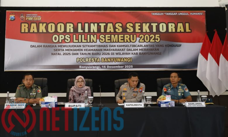BANYUWANGI, Netizens.id– Kabupaten Banyuwangi diprediksi akan kembali menjadi salah satu daerah tujuan wisatawan selama masa libur Natal dan Tahun Baru (Nataru) 2026. Mempersiapkan hal itu, Polresta Banyuwangi menggelar rapat koordinasi (rakor) Operasi Lilin Semeru, yang dihadiri lintas sektor, di Polresta Banyuwangi, Selasa (16/12/2025).