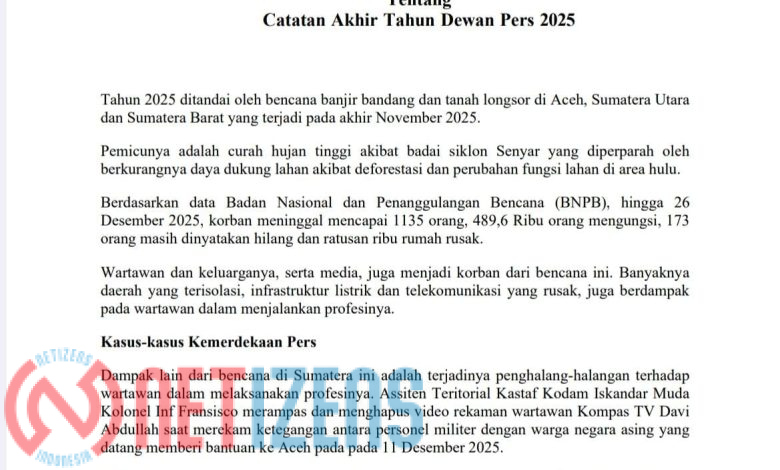 JAKARTA, Netizens.id – Tahun 2025 dicatat Dewan Pers sebagai tahun penuh tantangan bagi pers Indonesia dengan tiga persoalan utama yang saling berkaitan: kemerdekaan pers, profesionalisme jurnalistik, dan keberlanjutan ekonomi media.
