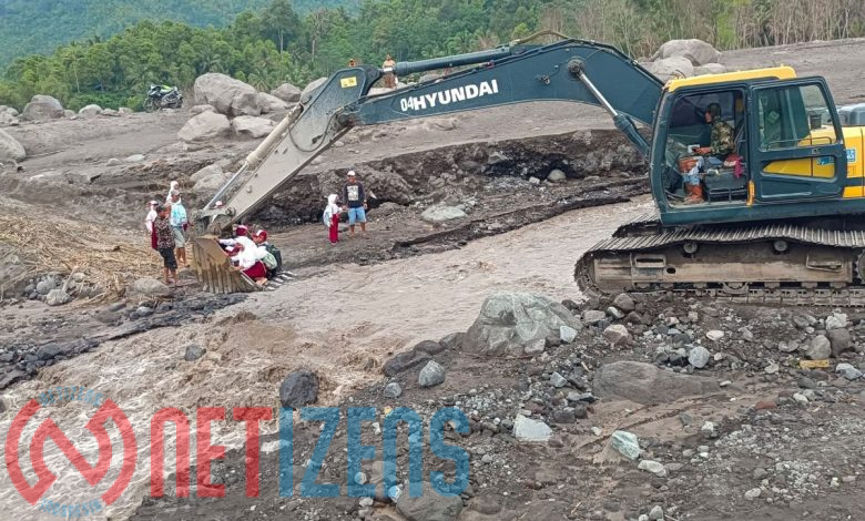 Pasalnya, akses jalan warga yakni Jembatan Limpas yang membentang di atas Sungai Regoyo terputus akibat banjir lahar hujan Gunung Semeru beberapa waktu yang lalu.