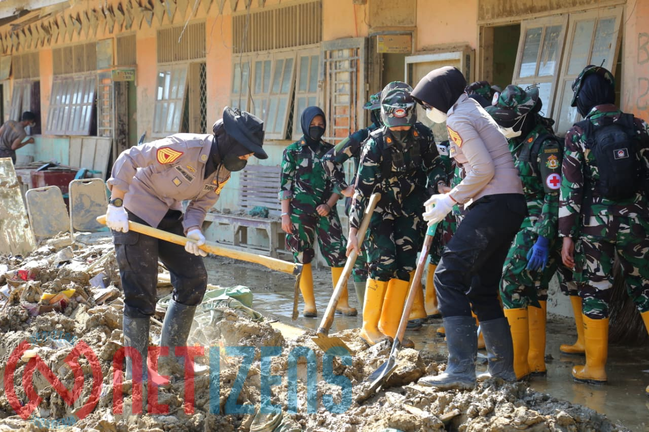 Taruna Akpol Bersihkan Lumpur SD Aceh Tamiang