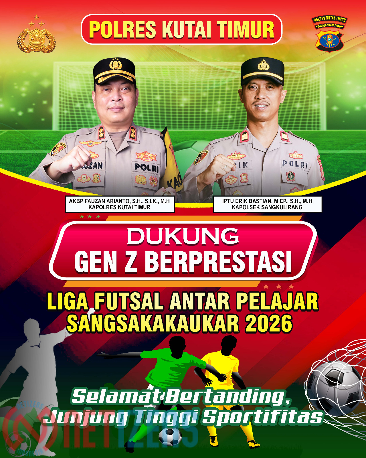 KUTAI TIMUR, Netizens.id – Kepolisian Sektor Sangkulirang bekerja sama dengan Karang Taruna Bidang Olahraga menggelar Turnamen Futsal Pelajar Sangsaka Kaukar Kecamatan Sangkulirang Tahun 2026 di Gor F3 Ronggang Sangkulirang.