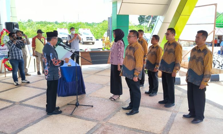 KUTAI TIMUR – Berdasarkan Surat Keputusan Bupati Nomor: 800.1.3.3/297/BKPSDM-MUT tentang Pemberhentian, Pengangkatan PNS dalam Jabatan Administrator dan Jabatan Pengawas di lingkungan Dinas Kesehatan Kabupaten Kutim tahun 2023, Bupati Kutim H Ardiansyah Sulaiman memimpin prosesi Pelantikan dan Pengambilan Sumpah Janji Jabatan Administrator dan Jabatan Pengawas di Lingkungan Pemerintah Kabupaten Kutai Timur (Kutim) tahun 2023, termasuk lingkup Rumah Sakit Umum Daerah (RSUD) Muara Bengkal. Momen dimaksud digelar di pelataran depan RSUD Muara Bengkal Kutai Timur, Jumat (17/11/2023).