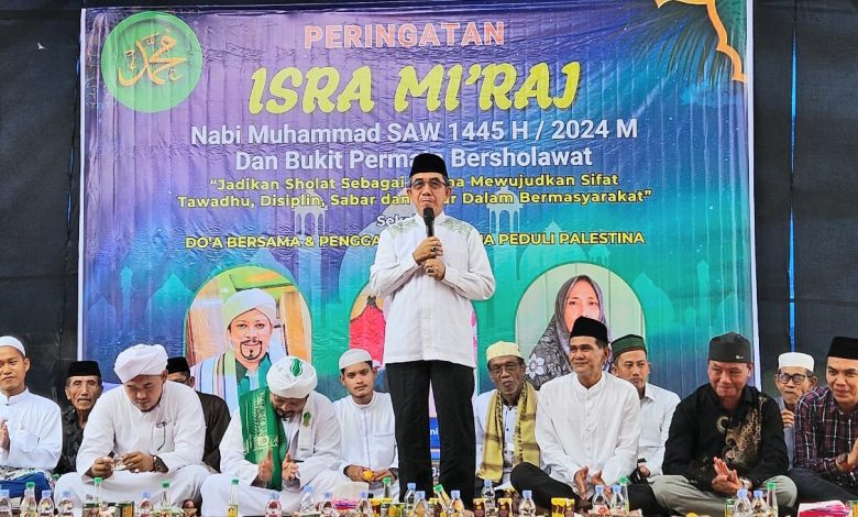 Nabi Muhammad SAW dalam Isra Mi’raj tersebut diberangkatkan oleh Allah SWT, dari Masjidil Haram hingga Masjidil Aqso. Lantas dinaikkan ke langit sampai ke Sidratul Muntaha, tempat tertinggi dan mendapat perintah langsung dari Allah SWT untuk menunaikan sholat lima waktu,” terang Bupati, sembari penuh rasa syukur