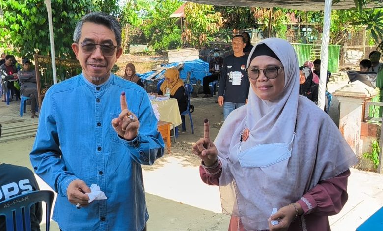 KUTAI TIMUR – Bupati Kutai Timur (Kutim) Ardiansyah Sulaiman, didampingi oleh istrinya Sitri Robiah, menyalurkan hak pilihnya dalam Pemilihan Presiden (Pilpres) dan Pemilihan Legislatif (Pileg) 2024 di Tempat Pemungutan Suara (TPS) 143, Gang Sulawesi 3, RT 25, Desa Sangatta Utara, Kecamatan Sangatta Utara.(14/02/2024)