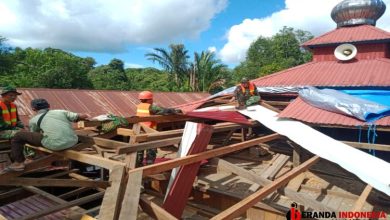 Satgas TMMD Ke-113 Kodim Kubar Pasang Talang Air Masjid Al-Ikhlas