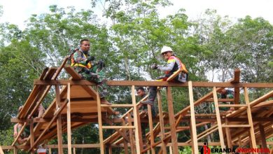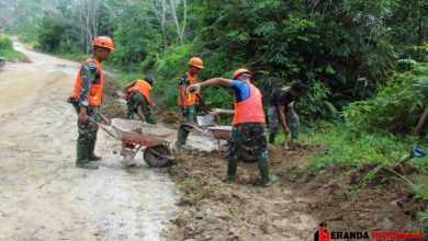 KUTAI BARAT – Tak kenal lelah, prajurit TNI Manunggal Membangun Desa (TMMD) Wiltas ke-113 Kodim 0912 Kabupaten Kutai Barat (Kubar)…