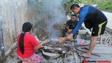 KUTAI BARAT – Masih kenakan seragam loreng TNI, anggota satgas TMMD membantu orang tua asuhnya memasak ikan untuk lauk makan…