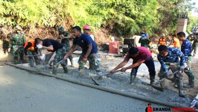 KUTAI BARAT – Anggota Tim Satuan Tugas (Satgas) TNI Manunggal Membangun Desa (TMMD) ke-113 Wiltas tahun 2022 Kodim 0912 Kubar…