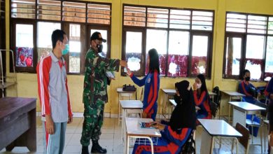 Cegah Penyebaran Covid-19 di Sekolah, Babinsa Koramil 0909-03/Muara Wahau Lakukan Ini